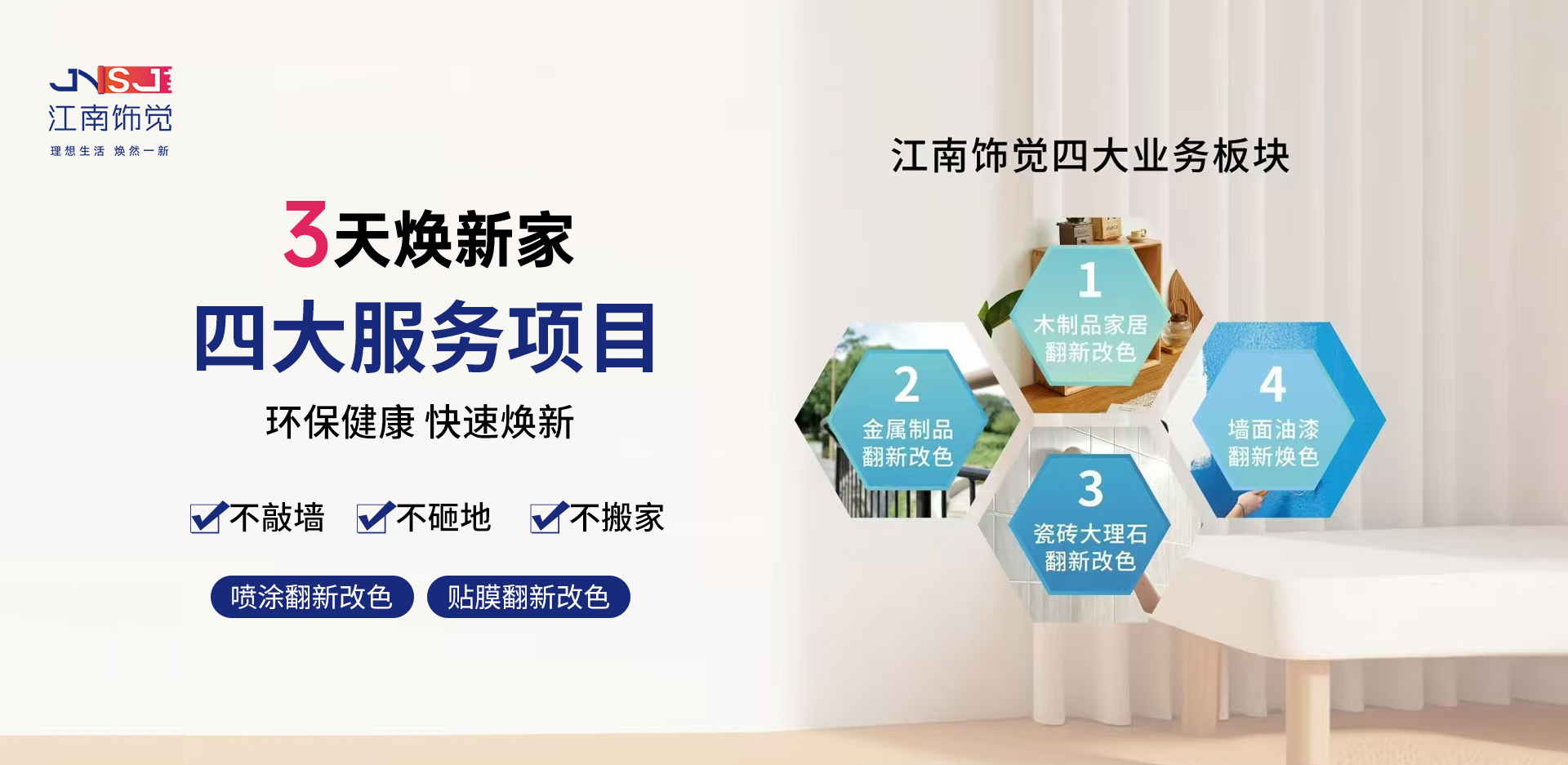 品牌介紹BRAND INTRODUCTION江南飾覺家居煥新連鎖品牌誕生于2023年,由浙江家居修護行業(yè)優(yōu)秀一眾人士共同創(chuàng)建,總部坐落于浙江溫州,是一家專業(yè)致力于家居煥新改造連鎖品牌,老房陳舊裝修家居煥新、省錢、省心、快捷、實現(xiàn)煥新家,為消費者打造高···